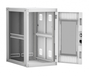 Наличие у шкафа двери с углом открытия 180 градусов и съемных боковых панелей и задней панели, предоставляет доступ для установки и обслуживания оборудования с четырех сторон.