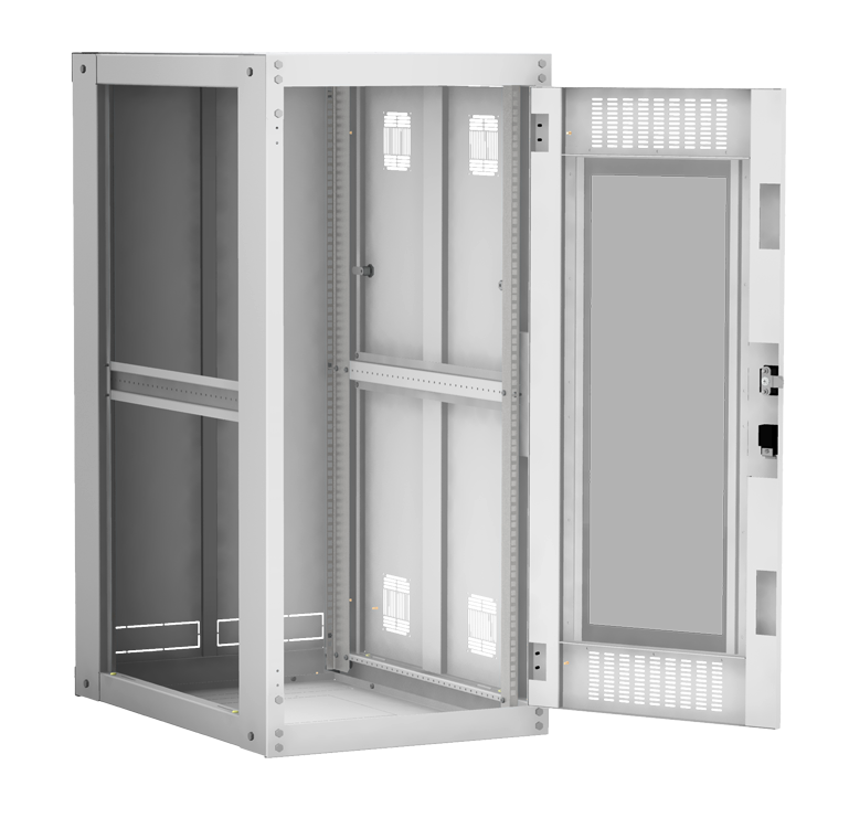 Наличие у шкафа двери с углом открытия 180 градусов и съемных боковых панелей и задней панели, предоставляет доступ для установки и обслуживания оборудования с четырех сторон.