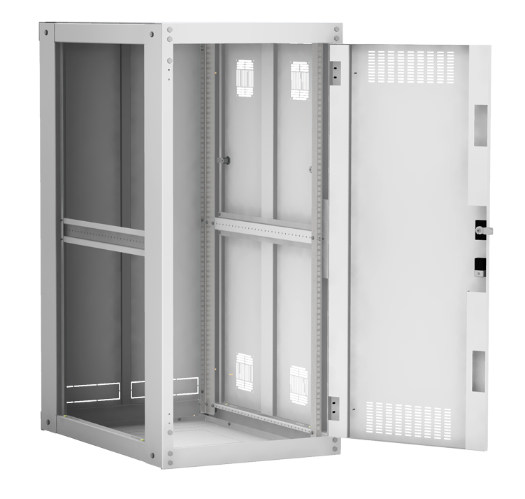 Наличие у шкафа двери с углом открытия 180 градусов и съемных боковых панелей и задней панели, предоставляет доступ для установки и обслуживания оборудования с четырех сторон.