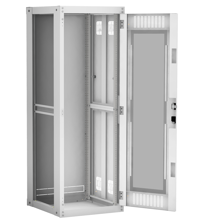 Наличие у шкафа двери с углом открытия 180 градусов и съемных боковых панелей и задней панели, предоставляет доступ для установки и обслуживания оборудования с четырех сторон.